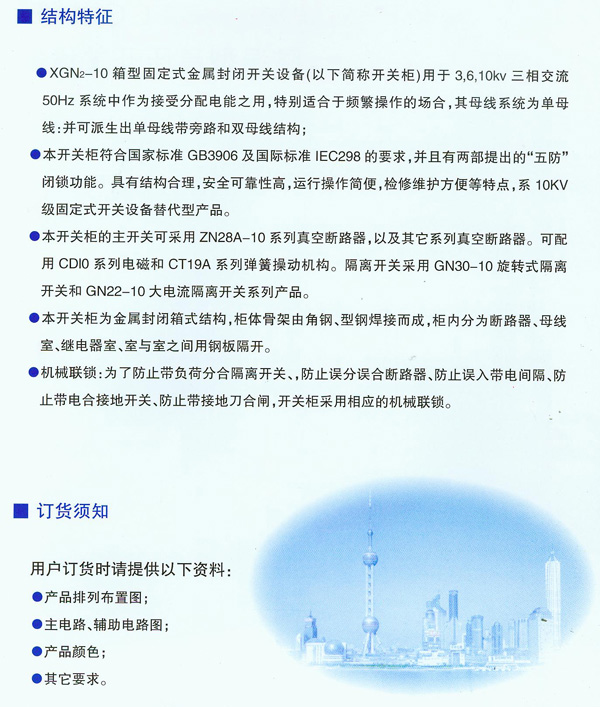 產品名稱:XGN2-10箱型固定式金屬封閉開關設備