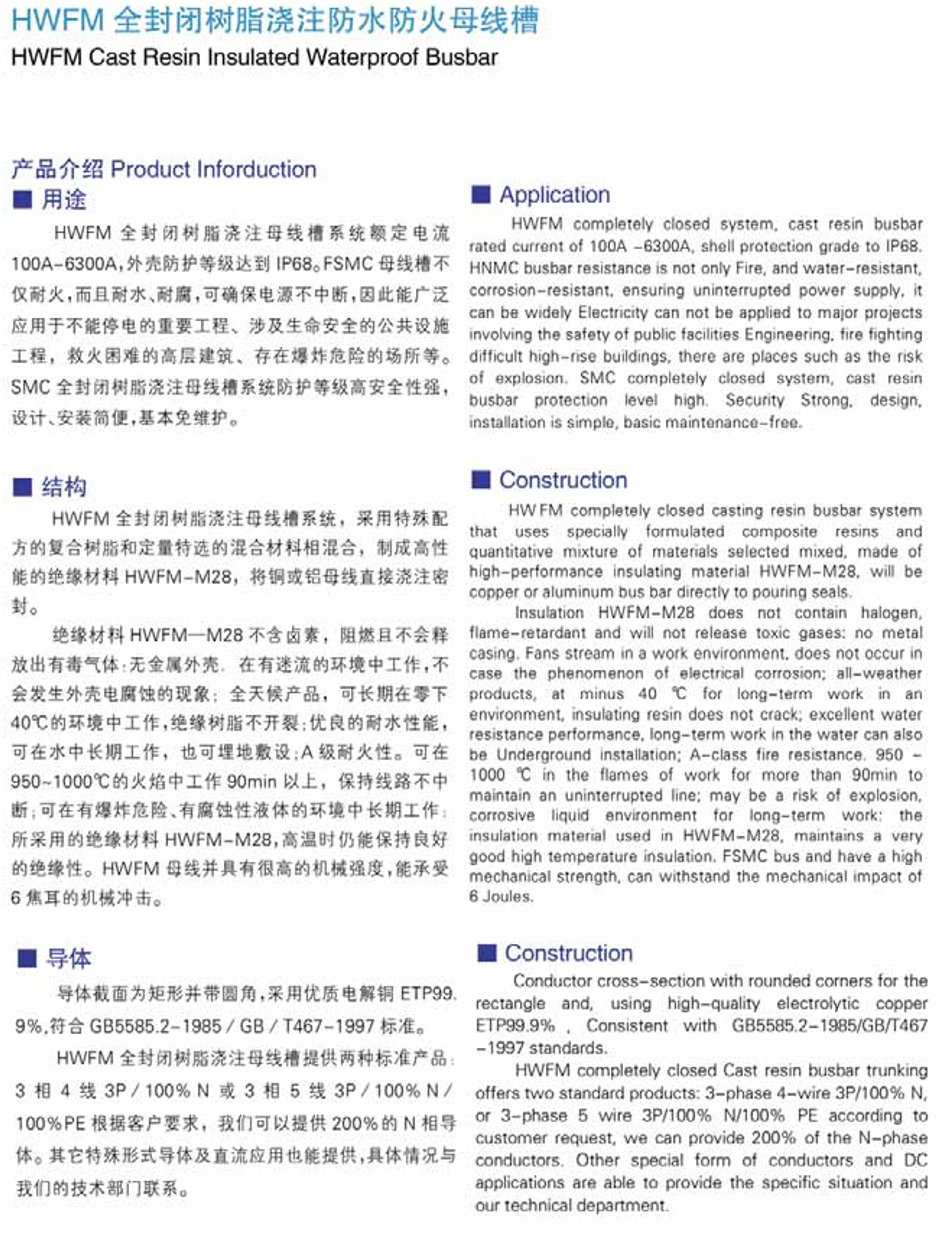 產品名稱:HWFM全封閉樹脂澆注防水防火母線槽