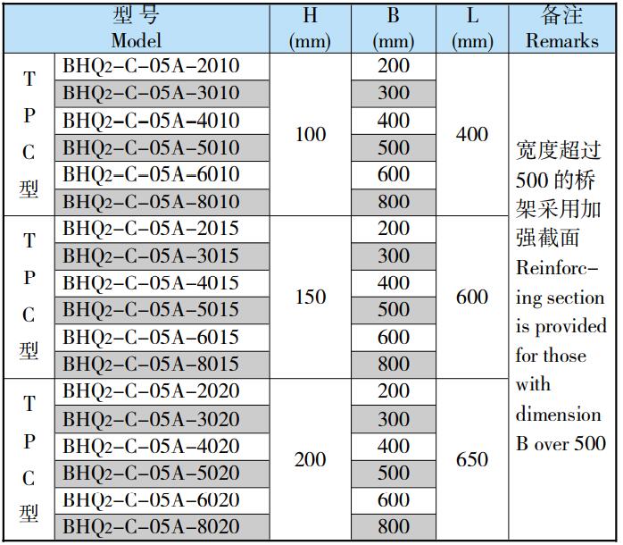 BHO2阻燃玻璃鋼橋架在不同跨距下****允許均布載荷變形量見下