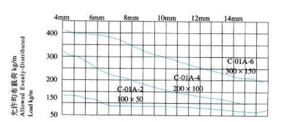 BHO2阻燃玻璃鋼橋架在不同跨距下****允許均布載荷變形量見下