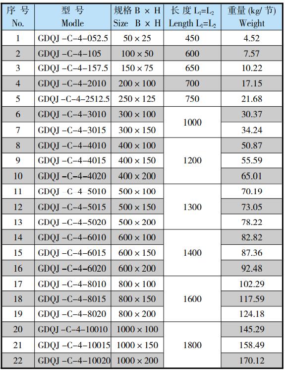 槽式電纜橋架在不同跨距下****允許均布載荷及變形量見下圖: