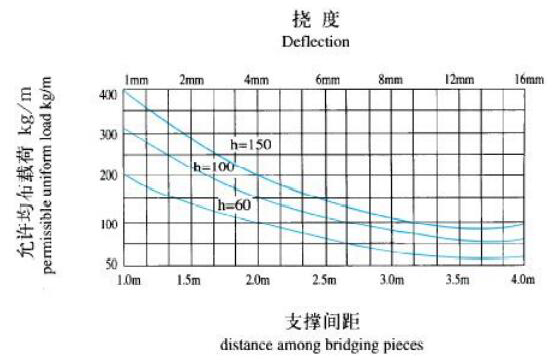 階梯式電纜橋架在不同跨距下****允許均布載荷及變形量見下圖: